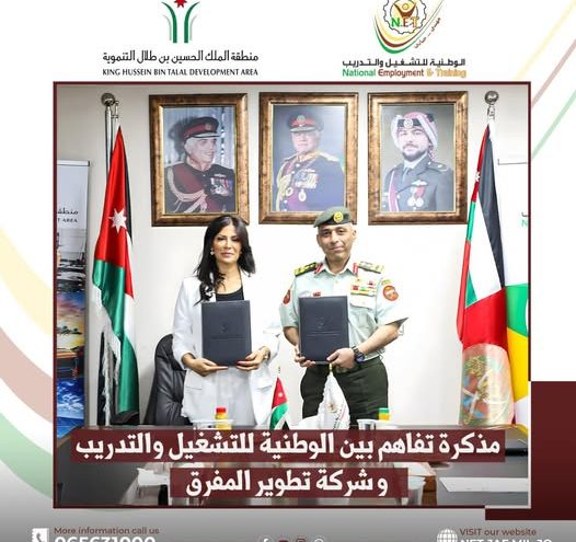 The National Employment and Training Company has signed a Memorandum of Understanding with Mafraq Development Company, aimed at strengthening cooperation in vocational and technical training, and expanding training programs to meet the needs of the labor market and investors in the King Hussein Bin Talal Development Area – Mafraq.