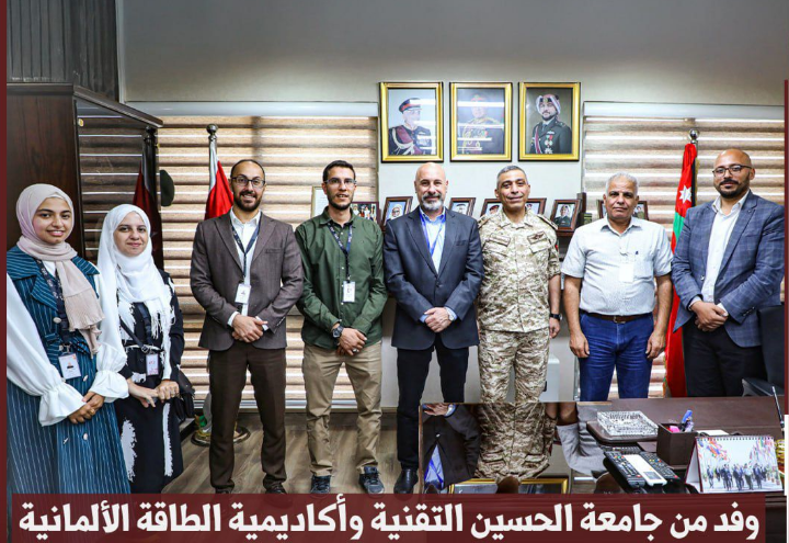 The Director General of the National Employment and Training Company received a delegation from Al Hussein Technical University and the German Energy Academy, headed by Dr. Tarek Al-Toutounji, Dean of the Faculty of Engineering at the university, and Eng. Hamza Al-Banna, Director of the Academy, to discuss prospects for cooperation in developing and implementing specialized training programs.