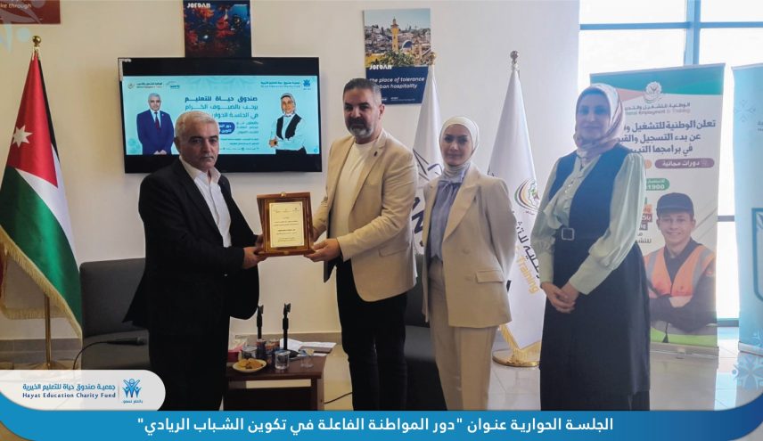 وأدارت الجلسة السيدة ابتهال الطراونة، المديرة التنفيذية لصندوق حياة – فرع العقبة، حيث قدّمت حوارًا تفاعليًا ساهم في تعزيز النقاش وفتح المجال أمام الشباب للتعبير عن رؤاهم وطموحاتهم.